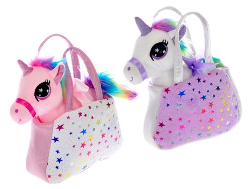 Jednorožec plyšový 20 cm s kabelkou 18x12 cm - mix barev (růžová, fialová)
