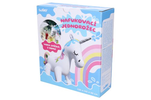 Jednorožec stříkající. Rozměry nafouknutého jednorožce 220x160x80 cm.