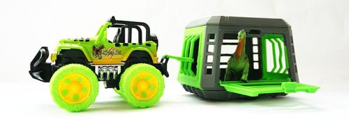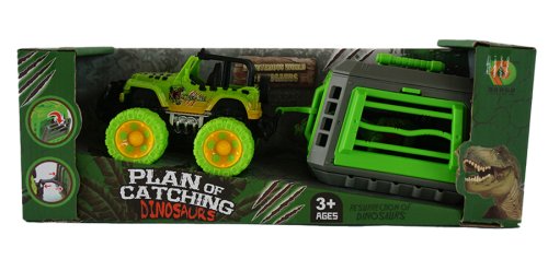 Jeep s přívesem a dinosaurem vyroben z plastu. Dinosaurus je vyndavací a přívěs odpojovací.