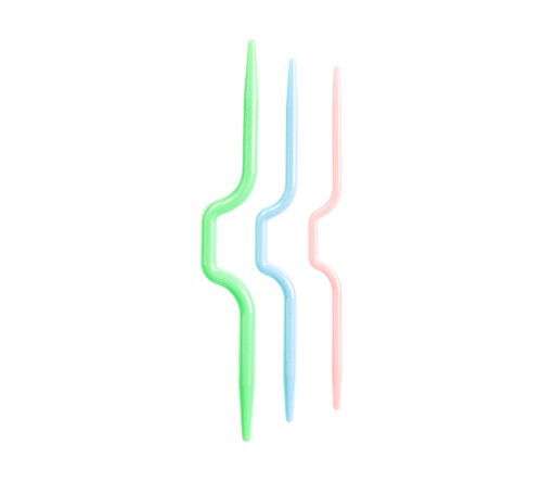 • Plastové pomocné jehlice prohnuté. Na zajištění ok při pletení vzorů s křížením ok. Barevná varianta dle dostupnosti.