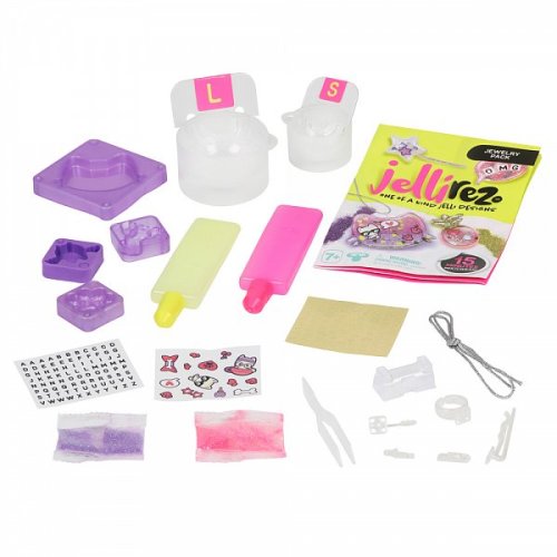 Sada pro vytváření jedinečných šperků: • 4 tematické sety - I Pets, EZ Eats, Text Me a retro • Každé balení obsahuje 1 formičku překvapení • Lze vytvořit až 8 vzorů • Připraveno za pouhých 15 minut SADA OBSAHUJE: 1 x gel Jelli A, 1 x gel Jelli B, 4 x formičky (1 překvapení), 1 x míchací lžíce, 1 x odměřovací a míchací kelímek, 2 x nálepka, 2 x třpytivý sáček. 4 x módní doplňky: 1 x náhrdelník 1 x prstýnek 2 x sponky Jelli Rez jsou kreativní sady, které vám umožní vytvořit vysoce kvalitní, módní a jedinečné pryskyřicové šperky za pouhých 15 minut. Prvky dostupné v sadách vám umožní kombinovat dekorace a vytvářet jedinečné šperky dle vaší fantazie.