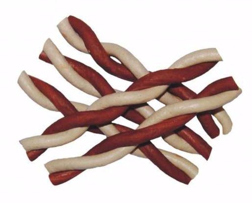 Pochoutka pro psy ve tvaru kroucené tyčinky s vanilkovou a kuřecí příchutí.