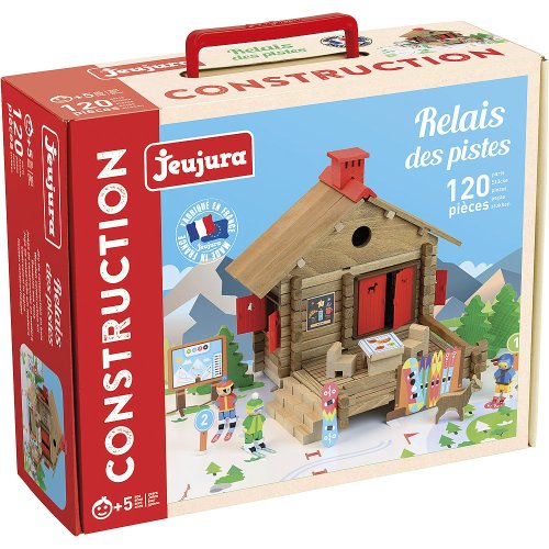 Dřevěná stavebnice lyžařského střediska rozvíjí fantazii a stane se ozdobou dětského pokoje. Stavebnice Jeujura Constructions mají dlouhou tradici a patří mezi klasické francouzské hračky. Nabízí série tématicky věnované chatám, domkům a farmám, ale také divokému západu a středověku. Dají se mezi sebou volně kombinovat a k řadě z nich je také nabízeno příslušenství, figurky a vozidla. Jsou vyráběny ve Francii, z masivního bukového a borovicového dřeva francouzského původu. Dílky stavebnic jsou ošetřeny výhradně za použití barev a laků na bázi vody. Každá sada je balena v praktickém lepenkovém kufříku potištěném rostlinnými inkousty a součástí balení je snadno pochopitelný návod. Hlavní vlastnosti: 120 dílků z masivního dřeva a podložkapraktické balenívyrobeno ve Francii