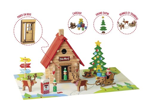 Objevte kouzlo Vánoc! Nahlédněte do Santovy chaty a kochejte se krásou severního pólu! Spolu s chaloupkou a Santou v sadě také naleznete malé skřítky, sáně se soby, poštovní schránku, ukazatel a vánoční stromek s dárky. Stavebnice Jeujura Constructions mají dlouhou tradici a patří mezi klasické francouzské hračky. Nabízí série tématicky věnované chatám, domkům a farmám, ale také divokému západu a středověku. Dají se mezi sebou volně kombinovat a k řadě z nich je také nabízeno příslušenství, figurky a vozidla. Jsou vyráběny ve Francii, z masivního bukového a borovicového dřeva francouzského původu. Dílky jsou ošetřeny výhradně za použití barev a laků na bázi vody. Každá sada je balena v praktickém lepenkovém kufříku potištěném rostlinnými inkousty a součástí balení je snadno pochopitelný návod. Hlavní vlastnosti: 90 dílků z masivního dřeva a podložkapraktické balenívyrobeno ve Francii