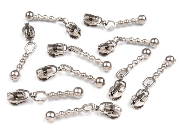 Kovový ozdobný jezdec má tvar tyčinky, kterou zakončuje kulička. Je s aretací, což znamená, že zdrhovadlo zůstává rozevřené pouze tolik, kolik si přejete. Jezdec je vhodný na metráž, kterou u nás najdete pod kódem 050716, [750678, 900594, 560600.]