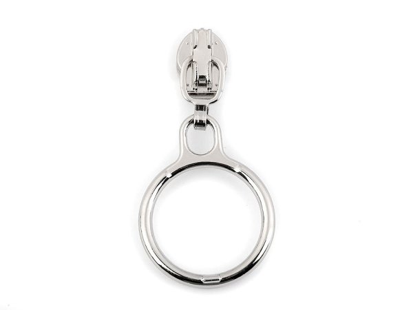 Kovový jezdec s táhlem v podobě kroužku je určený ke spirálovým zipům o šíři 3 mm v metráži, které u nás najdete pod kódem 750678, 050716, 060714. Průměr kroužku je 20 mm.