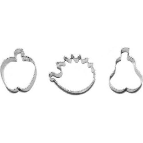 Tři vykrajovátka z kvalitního pocínovaného plechu – ježek, jablko a hruška.