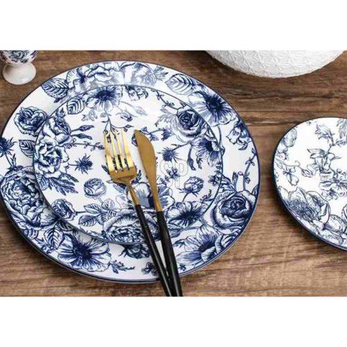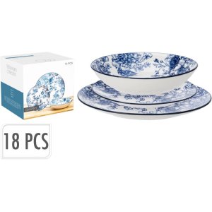 Elegantní jídelní sada 18 dílů z kvalitního porcelánu s jemným květinovým motivem v modré barvě.