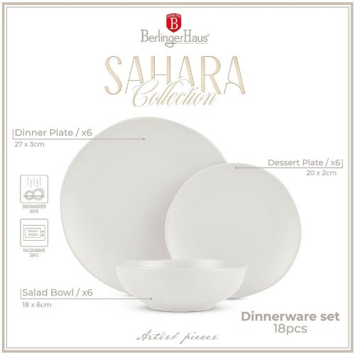<SPAN lang=CS><P dir=ltr align=left><STRONG>Představujeme sadu Berlinger Haus BH10022 Sahara Dinnerware Set. Decentní elegance v matném krému</STRONG></P><P dir=ltr align=left><STRONG>Vynikající řemeslné zpracování kameniny<BR></STRONG>Zvyšte svůj jídelní zážitek se sadou nádobí Berlinger Haus BH10022 Sahara, pečlivě vyrobené z kameniny prvotřídní kvality. Tato kolekce představuje sofistikovaný matný krémový povrch, který nabízí jemnou, ale nápadnou estetiku, která doplní jakýkoli domácí dekor. Sada obsahuje šest jídelních talířů, šest salátových misek a šest dezertních talířů, přičemž každý kus je dokonale připraven k vylepšení vašich stolovacích příležitostí.</P><P dir=ltr align=left>Jemná matná krémová barva této sady nádobí přináší teplý, příjemný tón na váš stůl, takže je ideální pro jakékoli jídlo – od neformálních snídaní po elegantní večeře. Tento všestranný odstín slouží jako krásné pozadí pro vaše kulinářské výtvory a umožňuje zářivým barvám vašeho jídla zářit.</P><P dir=ltr align=left><STRONG>Všestranná a komplexní sada</STRONG></P><UL><P dir=ltr align=left><LI>Talíře: průměr 27 cm, ideální pro elegantní podávání hlavních jídel. <P></P><P dir=ltr align=left></P><LI>Salátové mísy: 18 cm široké a 6 cm hluboké, ideální pro čerstvé saláty nebo teplé polévky. <P></P><P dir=ltr align=left></P><LI>Dezertní talíře: 20 cm, zlepšující prezentaci vašich sladkých pochoutek nebo malých slaných kousků. <P></P></LI></UL><P dir=ltr align=left><STRONG>Odolnost a praktičnost</STRONG><BR>Robustní kameninová konstrukce je vyrobena tak, aby vydržela, zajišťuje trvanlivost a odolnost vůči každodennímu opotřebení, takže je vhodná jak pro zvláštní příležitosti, tak pro každodenní použití. Navíc je celá sada vhodná do myčky a mikrovlnné trouby a nabízí snadnou přípravu a čištění jídla – praktická volba pro dnešní uspěchaný životní styl.</P><P dir=ltr align=left></P><P dir=ltr align=left>Proč si vybrat sadu nádobí Berlinger Haus BH10022 Sahara?<BR>Dodává nádech rafinované elegance svým stylovým matným krémovým designem. Poskytuje kompletní sadu talířů a misek pro jednotný vzhled napříč všemi chody. Zajišťuje snadnou údržbu díky kompatibilitě s myčkou a mikrovlnnou troubou.</P><P dir=ltr align=left>Proměňte svůj jídelní stůl se sadou nádobí Berlinger Haus BH10022 Sahara. Tato sada je ideální pro ty, kteří ocení minimalistický design a praktičnost, a slibuje, že bude cenným doplňkem vaší kuchyně.</P></SPAN><STRONG>Obsahuje:</STRONG> <BR>- 6 ks plytkých talířů: 273 cm. <BR>- 6 ks polévkých / salátových misek: 186 cm <BR>- 6 ks dezertních talířů: 20*2 cm <BR>- Barva: matná krémová sahara <BR>- Materiál: kamenina prémiové kvality <BR>- Lze mýt v myčce nádobí <BR>- Vhodné do mikrovlnné trouby