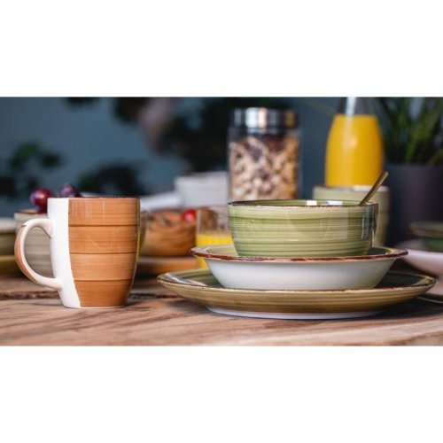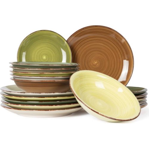 S touto 18dílnou sadou nádobí model ´Nature´ vnesete přírodu do svého domova.Tato sada je vhodná pro 6 osob. Ručně malovaná sada nádobí Nature obohatí vaši sbírku nádobí a dodá snídani, obědu a/nebo jídelnímu stolu přirozený vzhled.Sada se skládá z:6x jídelní talíř 27 cm6x hluboký talíř 20,5 cm6x snídaňový talíř 19,5 cm