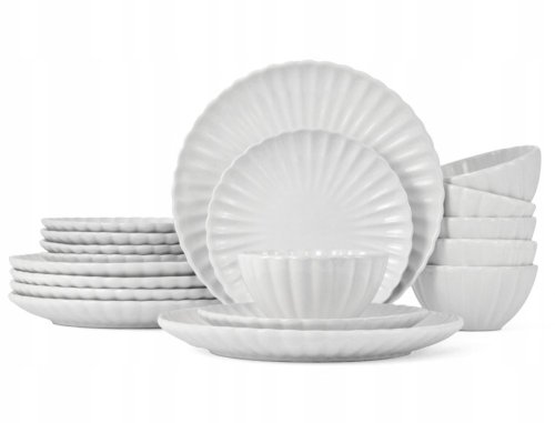 Toto nádobí je časově neotřelé a trendy, skvěle se hodí do každé kuchyně. Jeho lesklý bílý design je výborným doplňkem pro různé styly servisu a prostředí. Tyto talíře mohou zdobit váš stůl při hostinách s přáteli nebo sloužit k pohodlnému snídání či obědu. Určitě si zaslouží místo ve vaší kuchyňské skříni.6 x miska6 x malý talíř6 x velký talíř