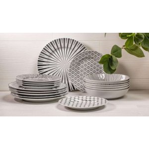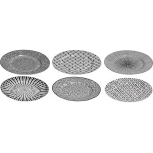 Přineste zábavu na stůl s touto sadou nádobí Cookinglife! Sada se skládá z několika talířů s opakujícími se potisky. Tyto potisky byly pečlivě vybrány tak, aby i přes davy zůstaly jako celek. Upozornění: tyto talíře jsou dodávány smíšené, takže nelze zvolit potisk. Talíře kombinujte například s jídelními talíři, hlubokými talíři nebo hrnky z kolekce Black Sailor. 6 jídelních talířů o 27 cm 6 snídaňových talířů o 20,5 cm 6 hlubokých talířů o 19,5 cm