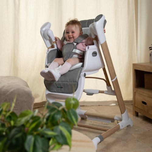 B-Swinging High Chair Pure 2v1 je unikátní jídelní židlička nové generace, která přináší více než jen pohodlné sezení!