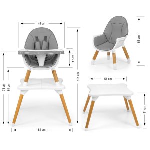 - Od 6 měsíců věku jako vysoká židle nebo nízká židle na krmení,
