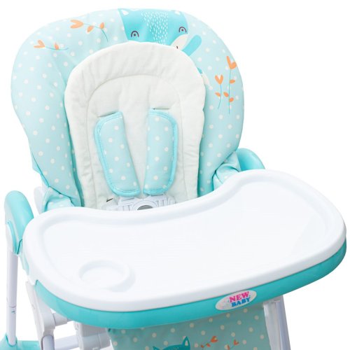 Luxusní dětská jídelní židlička New Baby Minty Fox je velmi pohodlná a spojuje bezpečí, praktické využití a vysokou variabilitu. Potah židličky, který je vyroben z vysoce kvalitní ekokůže, je měkký a příjemný na dotek a potištěný krásným obrázkem. Bezpečnostní pásy jsou vybaveny chrániči, které zajišťují komfort vašeho dítěte. Židlička se velmi jednoduše skládá a nastavuje. Součástí balení je i odnímatelná vložka pro miminka.