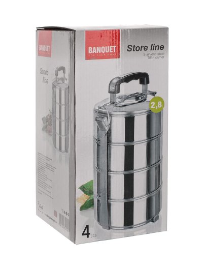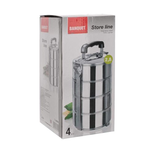 4dílný nerezový jídlonosič STORE LINE je určený k přenášení potravin a hotových pokrmů. Sada obsahuje 3 nerezové misky.