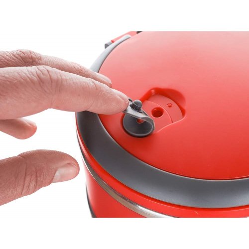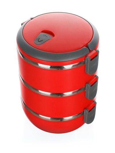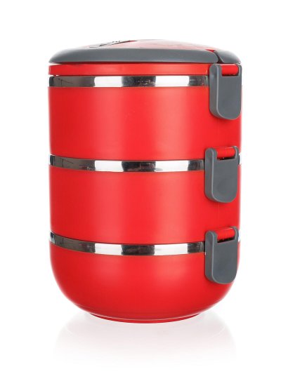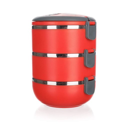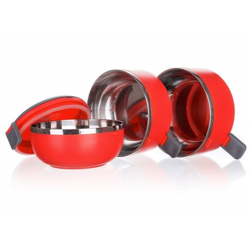 průměr: 14,5 cm objem: 3 x 0,55 l celkový objem: 1,65 l materiál: uvnitř nerez 201 (síla nerezu 0,30 mm), plast - polypropylen barva: červená