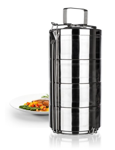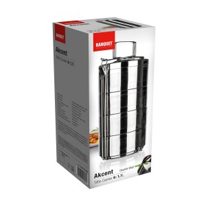 3dílný nerezový dvoustěnný jídlonosič AKCENT je určený k přenášení potravin a hotových pokrmů. Sada obsahuje 4 nerezové dvoustěnné misky o průměru 16 cm a výšce 7,5 cm. Díky dvoustěnnému provedení je praktický pro uchování teplého pokrmu během přenášení.