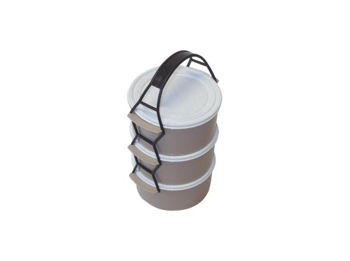Box na ukládání a přepravu jídla, složený ze 3 dílů, které jsou navzájem propojené držadlem.