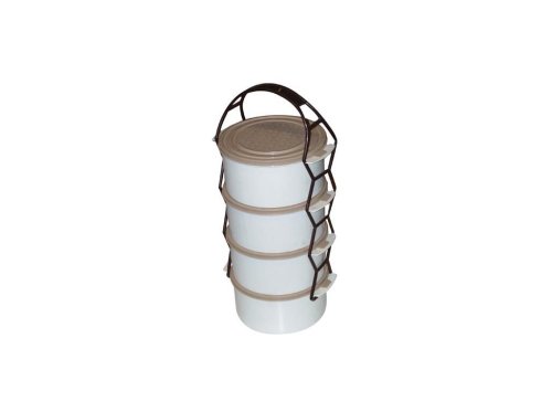 Box na ukládání a přepravu jídla, složený ze 4 dílů, které jsou navzájem propojené držadlem.