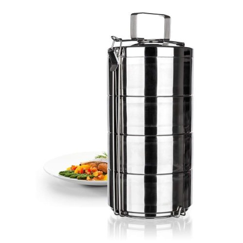 4 nerezové misky jsou vyrobeny z kvalitního nerezového materiálu. Dvoustěnné provedení vám zaručí, že vaše jídlo zůstane teplé i během přenášení. Misky můžete mýt v myčce na nádobí, ovšem pouze na kratší program a ihned po domytí utřít do sucha.