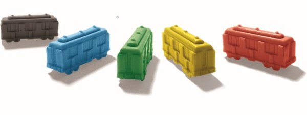 Obsah balení: 1 herní plán 240 barevných vagónů 110 karet vagónů 30 karet cílových stanic 1 karta se stručným přehledem 5 dřevěných bodovacích žetonů 1 česká a slovenská pravidla