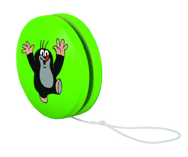 Zelené Jo-jo s jásajícím krtečkem. Baleno v přírodní papírové krabičce. Nevhodné pro děti do 3 let. Obsahuje malé části. Výrobek je zdravotně nezávadný.
