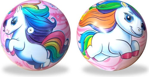 Obrázkový míč s barevným potiskem veselých jednorožců. Míč je vyroben z voděodolného materiálu a je vhodný nejen na kopání či házení na zahradě nebo na hřišti, ale lze jej použít také v bazénu. Průměr 230 mm. Balón je možno v případě potřeby dofouknout pumpičkou na kolo nebo pomocí kompresoru. Vyrobeno v EU.