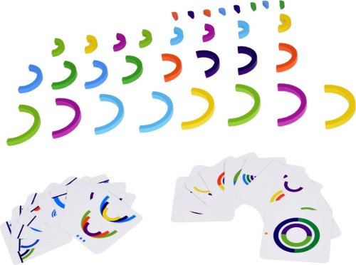 Úkolové karty: Na oboustranných kartách se nachází úkoly s různou obtížností. Karty jsou označeny tečkami (1 až 4), což umožňuje snadné přizpůsobení věku a dovednostem dítěte. Obtížnost lze zvyšovat postupem času.
