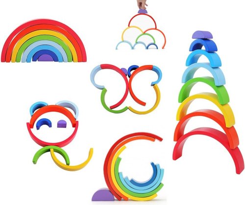 Tato dřevěná Montessori skládačka je skvělým spojením hry a vzdělávání. Hračka přispívá k celkovému rozvoji dítěte a pomáhá rozvíjet schopnosti, jako je rozlišování barev, velikostí, schopnost porovnávání, reprodukce a samostatné řešení problémů. Během hry si dítě také procvičuje jemnou motoriku a prostorovou představivost. Dřevěné bloky jsou natřeny barevným, bezpečným lakem, který je pro dítě atraktivní a motivuje ho ke hře. Sada obsahuje: