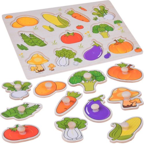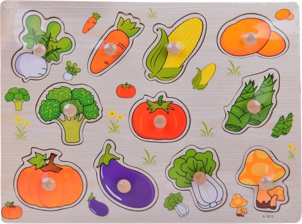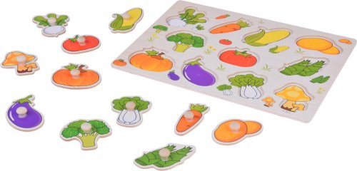 Dřevěné vkládačky jsou jednou z nejlepších hraček pro rozvoj logiky a kreativity u dětí. Úkolem dítěte je přiřadit jednotlivé dílky k odpovídajícím otvorům na základě tvarů a ilustrací. Při hře si dítě procvičuje jemnou motoriku, koordinaci oko-ruka, schopnost porovnávat, postřeh a logické myšlení. Díky barevným ilustracím se dítě naučí rozeznávat různé druhy zeleniny a získá motivaci k učení o zdravém stravování. Vlastnosti: