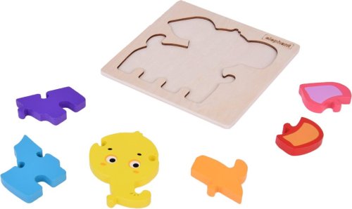 Jak hračka funguje? Puzzle se skládá z dřevěného podkladu s vyřezaným vzorem slona a 6 barevných dílků, které je třeba správně umístit, aby vznikl kompletní obrázek. Vzdělávací přínosy: