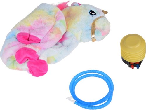 Uši jednorožce slouží jako držadla pro lepší stabilitu dítěte při hopsání, rozměry: 52 x 61 x 17 cm, mezi ušima je pískátko, které hru ještě více zpestří, hraní s tímto skákadlem procvičuje dětskou rovnováhu a zároveň podporuje rozvoj svalů a motorické koordinace, přispívá k formování správného držení těla a postavy dítěte, součástí balení je pumpička k nafouknutí koníka, nosnost 30 kg.