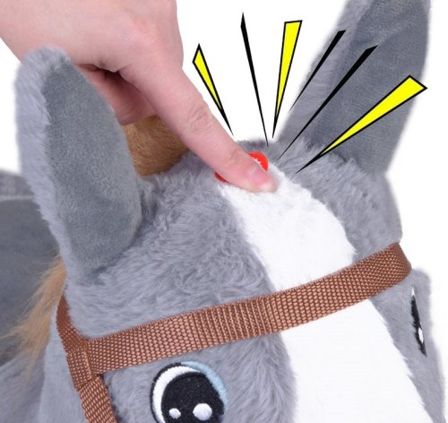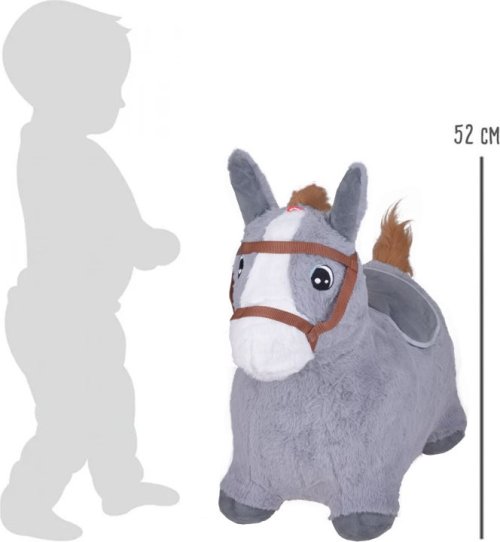 Uši koníka slouží jako držadla pro lepší stabilitu dítěte při hopsání, rozměry: 52 x 61 x 17 cm, mezi ušima je pískátko, které hru ještě více zpestří, hraní s tímto skákadlem procvičuje dětskou rovnováhu a zároveň podporuje rozvoj svalů a motorické koordinace, přispívá k formování správného držení těla a postavy dítěte, součástí balení je pumpička k nafouknutí koníka, nosnost 30 kg.
