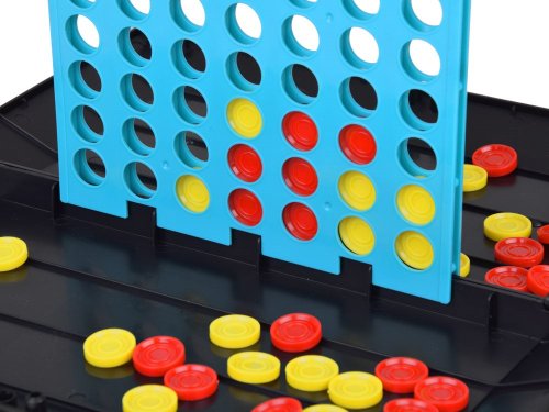 základnu pro hru, herní desku pro hru Čtyři v řadě, 4 x kolečko, 4 x křížek, 20 x žluté žetony, 20 x červené žetony.