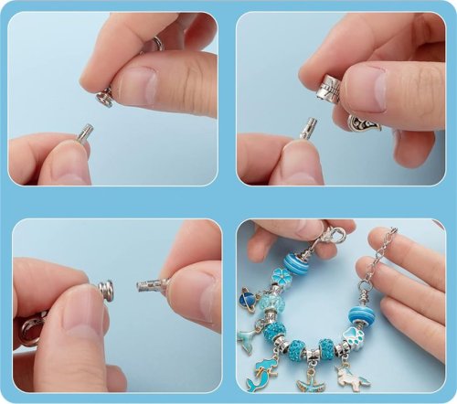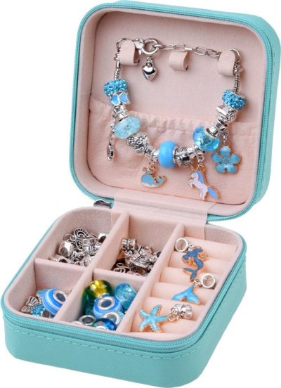 Sada korálků v krabičce na výrobu vlastních originálních náramků a náhrdelníků. Tato sada poskytne každé dívce spoustu zábavných a kreativních chvil. Dívky, které rády vyrábí ručně, najdou v této sadě inspiraci k vytvoření vlastní jedinečné bižuterie. Vlastnoručně vyrobený náramek je tím nejcennějším a nejkrásnějším šperkem. Ze sady korálků můžete vytvořit náramek nebo náhrdelník pro sebe, svou maminku nebo kamarádku – a určitě to bude ten nejkrásnější šperk. Sada je laděna do stříbrné barvy s modrými a zlatými prvky. Obsah sady: