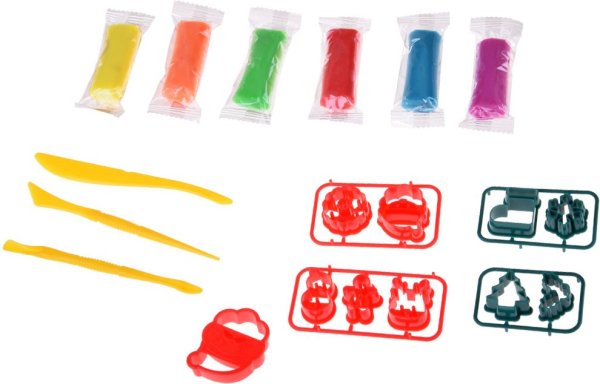 Hmota je měkká a pružná, snadno se tvaruje. Možnost míchat barvy a vytvářet nové odstíny. Rozvíjí dětskou kreativitu, jemnou motoriku a představivost. Sada obsahuje: 6 barevných plastických hmot, 10 formiček, 3 plastové nože bezpečné pro děti