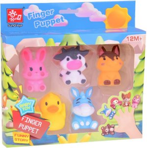 Obsah balení: 5 gumových maňásků na prsty – zvířátka z farmy (králík, kráva, pes, kachna, osel). Rozměry každého maňáska: cca 5 × 4 × 4 cm. Hračky jsou vyrobeny z bezpečného a měkkého plastu, šetrné k citlivé dětské pokožce. Jsou snadno omyvatelné, odolné a zaručují dlouhodobou zábavu. Vhodné pro děti od 12 měsíců.