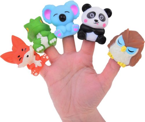 Obsah balení: 5 gumových maňásků na prsty – zvířátka ze ZOO (ještěrka, koala, liška, sova, panda). Rozměry každého maňáska: cca 5 × 4 × 4 cm. Hračky jsou vyrobeny z bezpečného a měkkého plastu, šetrné k citlivé dětské pokožce. Jsou snadno omyvatelné, odolné a zaručují dlouhodobou zábavu. Vhodné pro děti od 12 měsíců.