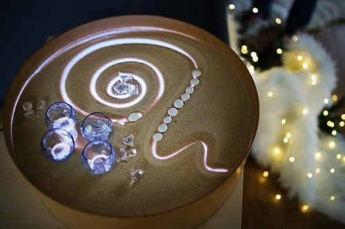 Kouzelný světelný stůl je praktický a lehký stůl určený pro hry, umění a terapii. Stůl má vyšší hranu okraje, která zabraňuje rozsypání písku, kamínkům a dalším drobným materiálům, které se používají při vytváření různorodých scén a hrách. Osvětlení je zajištěno LED diodami, vytváří 16 různých barev, které lze automaticky nastavit ve 4 různých frekvenčních programech. Automatické změny barev podněcují k originálnímím hrám a kreativitě. Na stole můžete kreslit prsty, štětcemi i plastovými nástroji. Stůl nabízí možnost tvořit různými technikami, které rozvíjí děti nejen v kreativitě, ale také jim pomůůže rozlišovat barvy, tvary, materiály, různé vzory a nabízí možnost vytvořit nekonečné množství jedinečných uměleckých děl. Stůl se může posloužit také napřklad jako divadelní scéna. Díky rozměrům a kulatému tvaru si může u stolu hrát nebo tvořit více dětí najednou. Stůl může posloužit jako osvětlení do pokojíčku i terapeutických místností. LED diody jsou umístěny pod pevným plexisklem (polykarbonát) s 45% propustností světla. Dálkové ovládání ovládá změnu barev, nastavení frekvenčních programů, intenzitu a jas světla. Není vhodné pro epileptiky. Hlavní vlastnosti: osvětlení LED diodami, 16 různých barevpodněcuje děti k originálním hrám a kreativitěkreslení prsty, štětcem nebo plastovými nástrojimožno použit jako osvětlení do terapeutických místnostímůže tvořit více dětí najednoudálkové ovládání