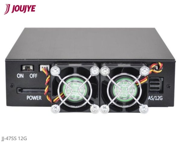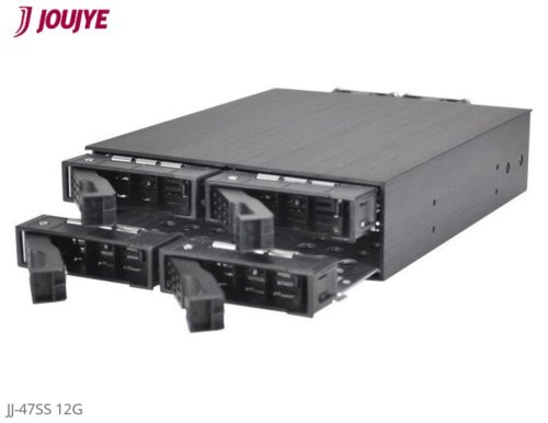 Jou Jye Backplane SATA3/SAS3 4x 2,5"HDD do 5,25" RoHS, 2x fan, 1x minisasHD (SFF-8643), SATA power
