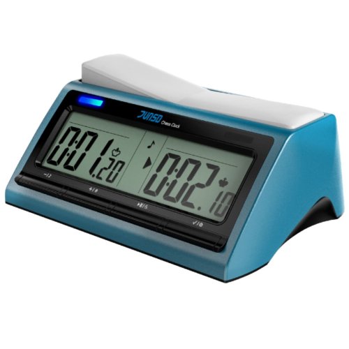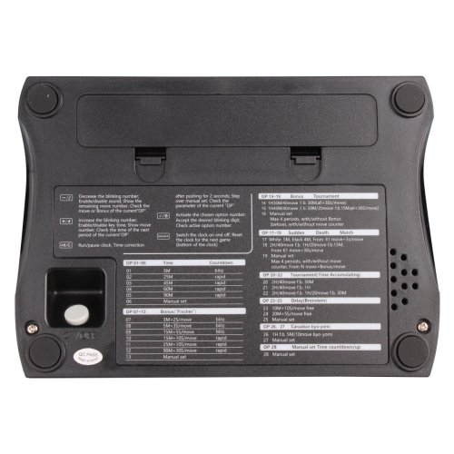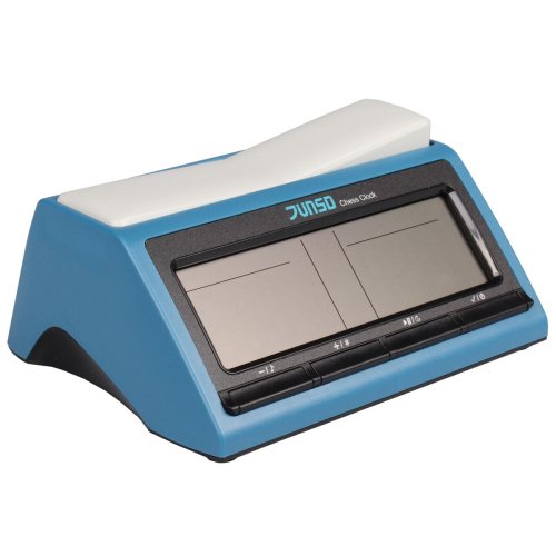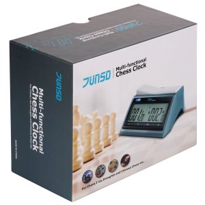 Digitální hodiny JUNSD JS242A pro šachové hráče všech úrovní - od úplných začátečníků až po profesionály. Hodiny vyrobené z odolného plastu se snadno ovládají a jejich nastavení je jednoduché a intuitivní. Přes svou malou velikost nabízí velký a přehledný LCD displej. Napájeny jsou dvěma bateriemi AA, které jsou součástí balení. - materiál: plast - rozměry: 15 x 11 x 6 cm - hmotnost: cca 290 g - velký LCD displej - 28 přednastavených časových režimů - použití japonského čipu EPSON IC – přesné měření, spolehlivost a odolnost proti rušení - napájení na 2x AA baterii (součástí balení)
