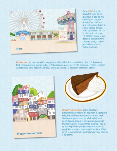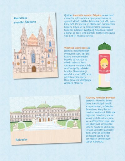 Oblíbená série minimiki přichází s další novinkou v podobě zábavné samolepkové knížky, v níž budou děti společně s panenkou Julií a jejími kamarádkami Stefanií a Natalií objevovat nejznámější kouty rakouského hlavního města Vídně, jedné z nejkrásnějších evropských metropolí. Známé vídeňské scenerie mohou doplňovat spoustou krásných samolepek podle vlastní fantazie a v knížce najdou také mnoho zajímavých informací o zdejších památkách, ale také třeba o obyvatelích této země.