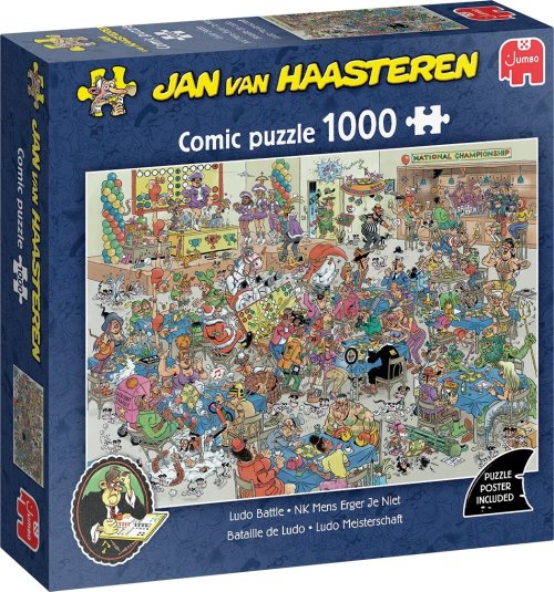 Skládání puzzle od Jana van Haasterena je velmi pestré a zábavné, prozkoumáte tak každý vtipný detail a zabavíte se na dlouhé chvíle. V souladu se svými tradicemi komponuje Jan van Haasteren do svých předloh svoji známou značku, kterou jako první jeho fanoušci hledají - žraločí ploutev a ruce, které vypadají, jako by nikomu nepatřily! A také mnoho dalších detailů, které naleznete na téměř všech jeho ilustracích - zubní protézu, Mikuláše a Haasterenův vlastní portrét. Velmi detailní, barevné a především vtipné ilustrace od autora jménem Jan Van Haasteren výhradně pro JUMBO. Jeho kresby mají výrazně rozeznatelný styl - vtipné obrázky, veselé situace a daleko více lidí, než byste očekávali! Puzzle z produkce Jan van Haasteren jsou po celém světě populární a doposud jich vytvořil více než 80. Ilustrační video Rozměr složeného puzzle cca 68 x 49 cm