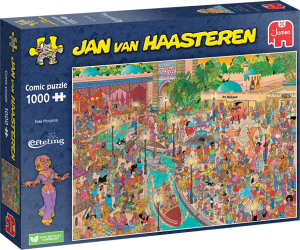 Skládání puzzle od Jana van Haasterena je velmi pestré a zábavné, prozkoumáte tak každý vtipný detail a zabavíte se na dlouhé chvíle. V souladu se svými tradicemi komponuje Jan van Haasteren do svých předloh svoji známou značku, kterou jako první jeho fanoušci hledají - žraločí ploutev a ruce, které vypadají, jako by nikomu nepatřily! A také mnoho dalších detailů, které naleznete na téměř všech jeho ilustracích - zubní protézu, Mikuláše a Haasterenův vlastní portrét. Velmi detailní, barevné a především vtipné ilustrace od autora jménem Jan Van Haasteren výhradně pro JUMBO. Jeho kresby mají výrazně rozeznatelný styl - vtipné obrázky, veselé situace a daleko více lidí, než byste očekávali! Puzzle z produkce Jan van Haasteren jsou po celém světě populární a doposud jich vytvořil více než 80. Ilustrační video Rozměr složeného puzzle cca 68 x 49 cm