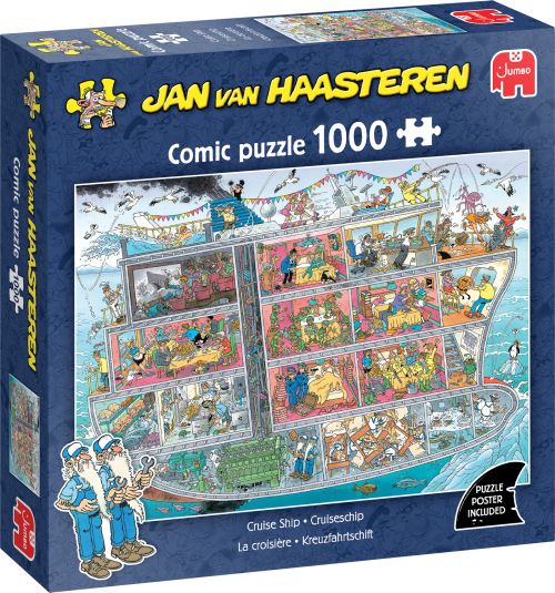 Skládání puzzle od Jana van Haasterena je velmi pestré a zábavné, prozkoumáte tak každý vtipný detail a zabavíte se na dlouhé chvíle. V souladu se svými tradicemi komponuje Jan van Haasteren do svých předloh svoji známou značku, kterou jako první jeho fanoušci hledají - žraločí ploutev a ruce, které vypadají, jako by nikomu nepatřily! A také mnoho dalších detailů, které naleznete na téměř všech jeho ilustracích - zubní protézu, Mikuláše a Haasterenův vlastní portrét. Velmi detailní, barevné a především vtipné ilustrace od autora jménem Jan Van Haasteren výhradně pro JUMBO. Jeho kresby mají výrazně rozeznatelný styl - vtipné obrázky, veselé situace a daleko více lidí, než byste očekávali! Puzzle z produkce Jan van Haasteren jsou po celém světě populární a doposud jich vytvořil více než 80. Ilustrační video Rozměr složeného puzzle cca 68 x 49 cm