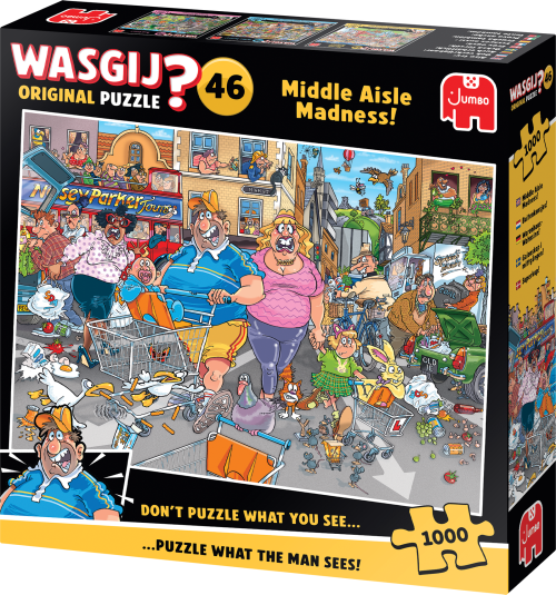 Puzzle WASGIJ je hádankou a výzvou zároveň. S WASGIJ je skládání puzzle ještě zábavnější ! WASGIJ je skutečnou výzvou a vynikající zábavou dokonce i pro zkušené skládače puzzle. Puzzle WASGIJ? Original nesleduje tradiční principy a způsob skládání dle předlohy. Výsledný obrázek je totiž jiný než ten vyobrazený na krabici. Abyste věděli, co vlastně máte poskládát, musíte nejprve odhalit pomocí vodítek a pokynů z obalu postavu z předlohy na krabici, z jejíhož pohledu budete puzzle skládat. Pak využijte své představivosti a směle se pusťte do zábavného skládání. Puzzle Wasgij?- ilustrační video Rozměr složeného puzzle cca 68 x 49 cm