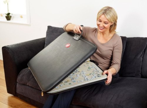ke skládání puzzle do 1000 dílků (68x49 cm) uzavíratelná klasickým zipem neklouzavý povrch ve formě kufříku s pohodlnou rukojetí na přenášení včetně dvou samostatných podložek na odkládání dílků složka se snadno vejde pod postel nebo vedle skříně puzzle není součástí výrobku