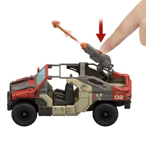 Zažijte akci jako z filmu Jurský svět! Terénní auto (27 cm) má odnímatelnou věž s vystřelovačem, který střílí šipku na odběr DNA nebo síť. Součástí je také figurka velociraptora (19 cm) a postavička Martina Krebse (9,5 cm) – ideální pro honičky i bitvy. Velociraptora můžete naskenovat v aplikaci Jurassic World Play a odemknout digitální verzi do hry. Skvělý dárek pro malé fanoušky dinosaurů od 4 let. Barvy a vzhled se mohou lišit.