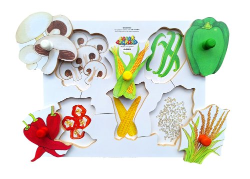 Just Jigsaws 153 Loupeme a krájíme plodiny 4 - dřevěné deskové puzzle 6 dílů představuje dřevěnou skládačku s kolíčky pro snadný úchop, která dětem krásně znázorňuje, jak vypadá zelenina, houby, kukuřice a rýže i pod svojí slupkou. Cílem této skládačky je, aby děti správně přiřadily zeleninu, houby, kukuřici a rýži k jejich nakrájené nebo vyloupané variantě. S tímto naučným puzzle si děti osvojují názvy různých druhů plodin, jejich barvy a tvary. Samotná hra zároveň pozitivně ovlivňuje rozvoj logického myšlení a formování prostorové představivosti, což z této na první pohled obyčejné skládačky dělá velmi zajímavou a edukativní hru. Sada obsahuje: žampiony, papriku sladkou, chilli papričky, kukuřici a rýži.